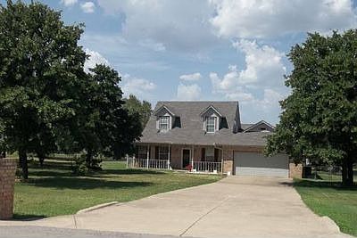 Beautifully updated with real wood floors in living room, formal dining/study. New stainless appliances blt in micro, dishwasher, elec range/oven Breakfast bar updated with stained cement, new sink. Master bedroom is down w/ brick flooring, updated master bath w / new double vanities, tub and separate shower. Carpet in upstairs bedrooms replaced, Both bedrooms w/ two closets, full bath. 1 acre corner lot, completely fenced. Two car att garage.