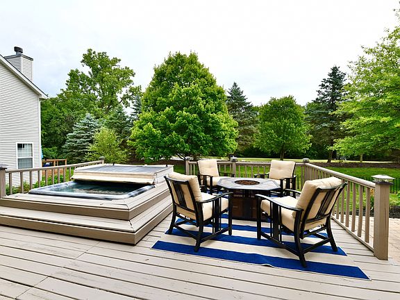 Did someone say "Curb Appeal"? You will smile when you approach this Beautifully Maintained Traditional Home on a special, quiet, cul-de-sac in wonderful Oakmont! Exuding Pride of Ownership, this beloved 4 Bed 3 Full Bath home will check all of your boxes! Open concept main floor includes large kitchen island, hardwood floors, all newer appliances & 42 inch kitchen cabinets The inviting, spacious family room has a lovely white painted mantle and attached surround sound speakers, as well as new carpet! There is a large dining room for entertaining and flex/ office with 2 sets of French Doors that also opens to the gathering room! From the Breakfast area, step onto the 2 tier deck, dip in the Hot Tub or sit by the firepit overlooking the private backyard with expansive Greenspace beyond! Upstairs you will find 4 bedrooms all with new, luxury carpet and 2 Full Baths. The Lower Level is a Great hang out space with a Built- in Bar, Full Bath, lots of Rec Space and extra Storage! Walk to the pool, playground and beach volleyball! Enjoy the vast amenities and top notch schools of Noblesville! Neighborhood is special and this home is a GEM! Enjoy your tour!