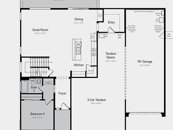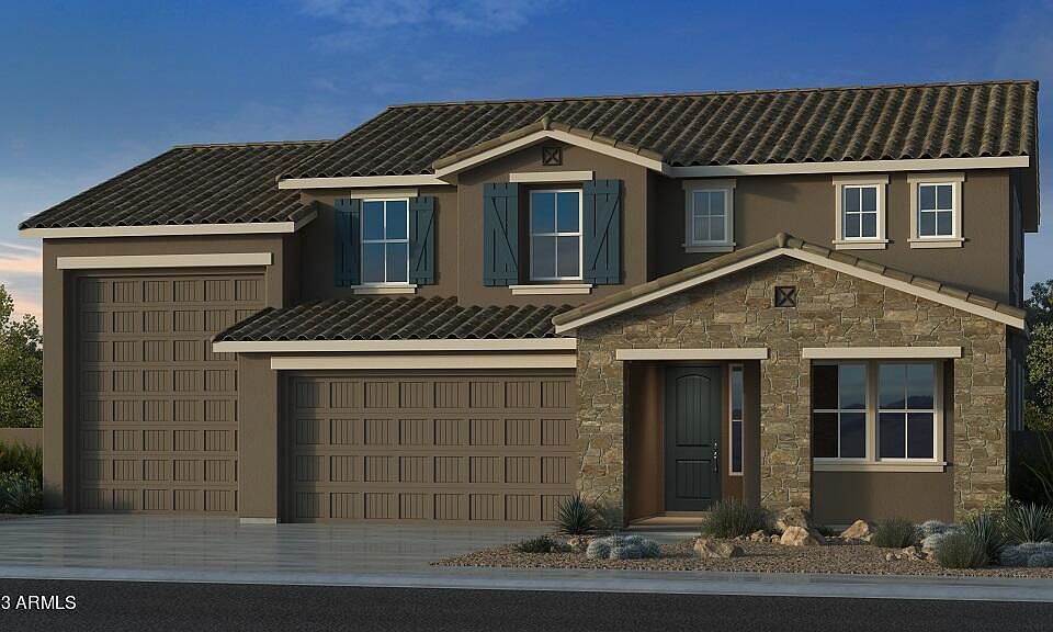 MLS#6643353 May Completion! The 55-RV3 floor plan at Allen Ranch Fiesta is a captivating two-story design, featuring 2,626 sq. ft., 5 bedrooms, 3 bathrooms, a 3-car tandem garage, an RV garage. This splendid home has a guest bedroom downstairs and 4 bedrooms on the upper level, ensuring privacy for you, your family, and guests. The expansive gathering room seamlessly connects to the dining and kitchen area, with an adjoining outdoor living space that enhances the overall indoor/outdoor living experience. The owner's suite boasts a spacious walk-in closet and double sinks, oversized shower, adding to the home's allure. Design upgrades feature appliances, cabinetry, countertops and flooring. Structural options added include: Bed 5 in place of flex room, extended covered patio , RV garage rear door, HVAC prewire and cleanout.