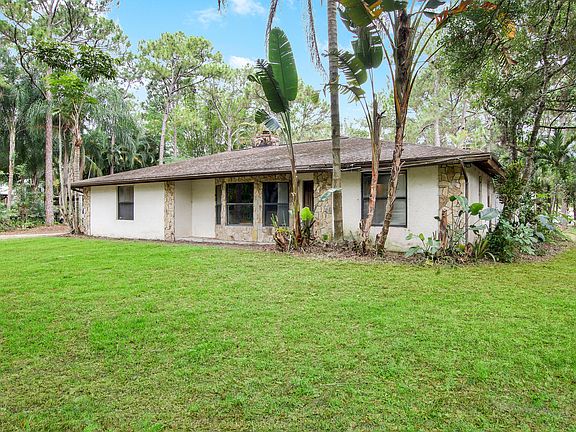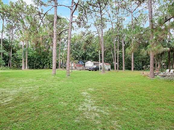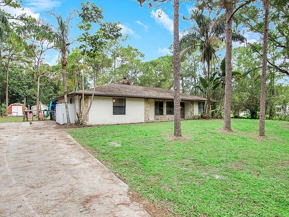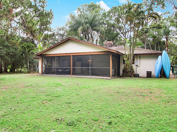 Jupiter Farms 3 bedroom 2 bath CBS home. Vaulted ceiling. Fireplace in Living room. 2 car garage converted to Game room for additional living space. Large screened back porch. Heavily treed lot . Close location to Indiantown Rd. Located on 1.25 acres. Fenced in. Surrounded by nice homes. Home needs TLC.