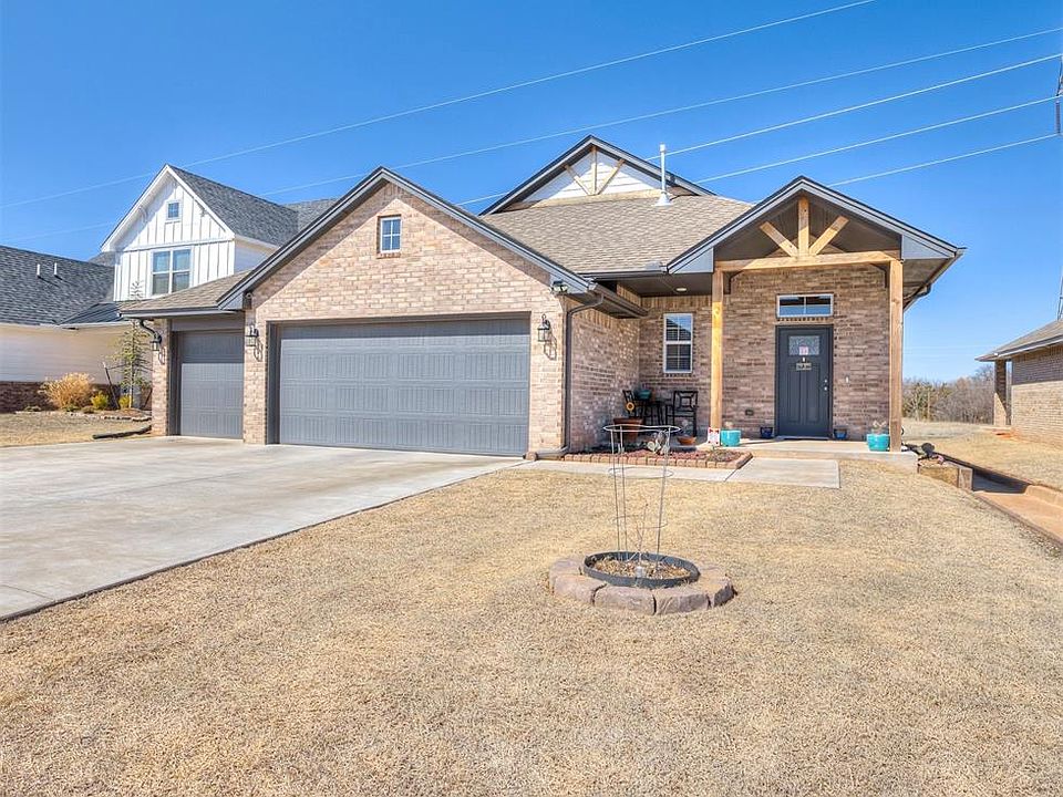 METICULOUS HOME IN THE MEADOWS AT MACARTHUR ADDITION! This one owner home in the highly sought after Deer Creek School District is in immaculate condition & full of style & function. The home features neutral colors throughout, a small study/office space, 3 car garage, an in-ground storm shelter, & a greenbelt area behind the home. As you approach, you'll be greeted by a welcoming covered front porch with rustic wood beams & thoughtfully designed flowerbeds, featuring vibrant cactus plants, which add a touch of desert beauty & low-maintenance charm. A spacious entry in the home leads to the living area which features 10' ceilings, wood grain laminate flooring, a sleek painted mantel, & open concept to the kitchen & dining space. The cozy gas log fireplace is the heart of the living area, featuring stylish subway tile surrounding it for a modern & clean look. You will love the details in this kitchen - quartz countertops, island with breakfast bar & pendant lighting, gray painted cabinets, a gas range, walk-in pantry, & herringbone style backsplash. A small study near the entry has a barn door for privacy & is the perfect spot for a home office or projects. The home has a split floor plan with the primary suite separate of the secondary bedrooms for added privacy & comfort. The primary suite features views of the backyard, a pedestal tub, & LARGE walk-in shower with pebble flooring. A mud room off the garage entry & across from the dedicated laundry room has a mud bench & hooks to keep everyone organized. A covered back porch overlooks the backyard & the greenbelt area behind the home. Yard is fully fenced & includes a gate on the back portion for access to the greenbelt area. It's perfect to walk your dog or get out for a quick hike or for extra room for play! Homeowner updates include cedar wood privacy fence, in-ground storm shelter, guttering, & water softener. Schedule your showing today before this cute home is sold!