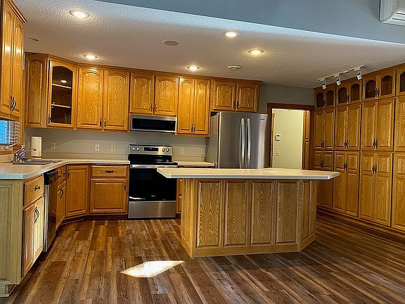Newer one level home. Oak cabinetry and custom pantry, vaulted ceiling, infloor heat, SS appliances, kitchen island , mud room, surround sound receiver, gas fireplace. Steel siding, fenced backyard, inground sprinkler system, nice deck and landscaping. Heated garage and 10 by 12 shed.