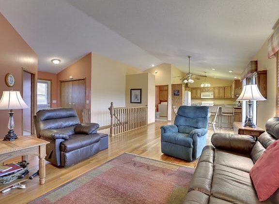 Lovingly cared for open concept w/o rambler on 10 tree lined acres. Vaulted main LVL boasts HWF thru KT, ID, and LR. Newer granite counters in KT. L/L w/ 2 more BR's, FAM RM and awesome room for crafters, woodworkers & hobbiest. 36x45 Pole Barn too!