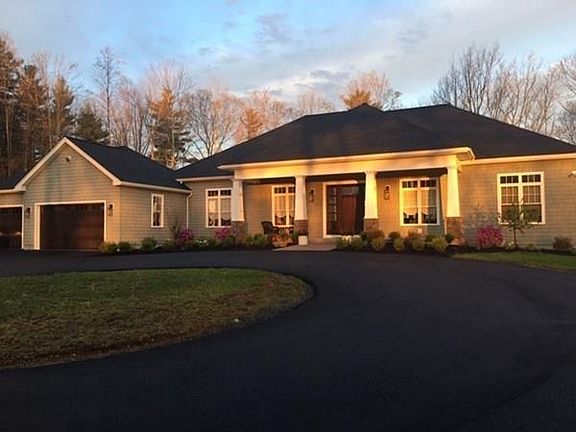 Custom 2600+sf contemporary ranch offers simple luxury for your stay-cation situated on 10+acres with golf course frontage in the beautiful Town of Oakham! 3 Bedrooms, 3.5 Baths & Attached 3 car garage. Expansive custom kitchen perfect for family gatherings & entertaining...counter space & cabinets galore,double sinks,double ovens, beverage fridge; all open to dining, sitting, family rooms. Propane fireplace, retractable tv, built-ins,hardwoods throughout main areas & bedrooms, tile baths & laundry, whole house generator, central air, propane. Master suite w/double walk-in closets,"spa"-like master bath w/soaking tub, double sinks, walk-in tile shower, radiant heat & master laundry. Two additional bedroom en suites. Enjoy the outdoor spaces as comfortable as the indoor...coffees on the front porch w /spectacular seasonal sunrises & cocktails on the back porch at the wood burning fireplace watching amazing sunsets over the golf course.