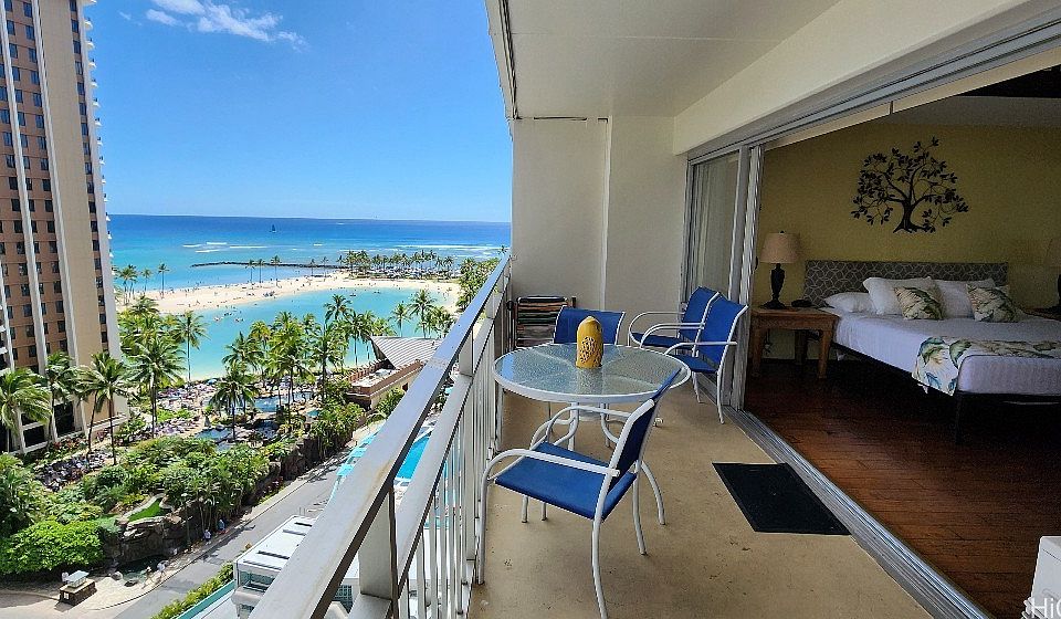 Ocean and Lagoon view one bed/one bath unit on higher floor with great city and mountain view in the world famous Ilikai Apt. Building! Prime location at the mouth of Waikiki and steps away from the beach. Make great income from vacation rentals or enjoy life in Waikiki close to all the shops, restaurants, and so much more. The unit features an open kitchen, granite countertops, appliances, kitchenware, and everything you need for a great stay.