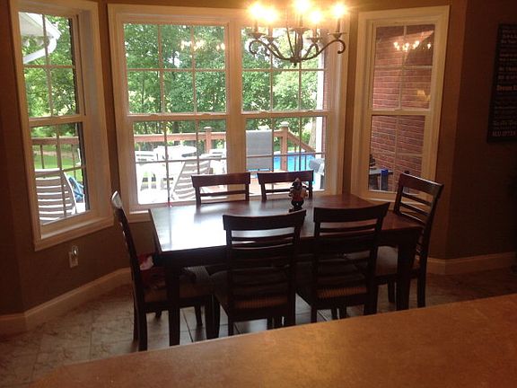 Just on the edge of town with a wonderful view. 4 bedroom 4.5 bath Spacious Kitchen and Breakfast nook Dining Sunroom Screened in Porch Deck and Pool Tile and Hardwood Recessed light Under house storage Double Garage Built in Storm Shelter