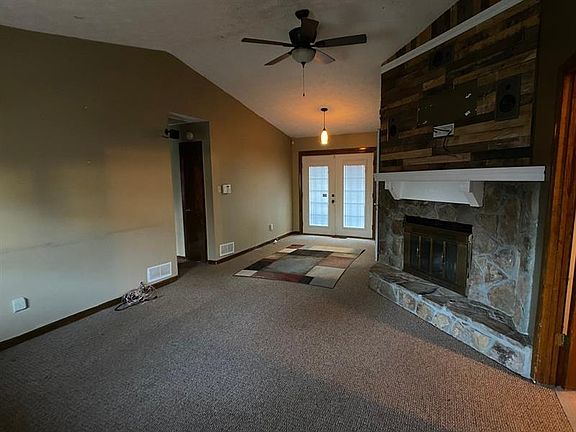 Perfect 3 bed 2 bath ranch home! Front porch leads to the den/family room with a stone gas fireplace and rustic shiplap. Great dining area with double doors leading to the oversized back deck! Galley kitchen with plenty of cabinet space leads the breakfast nook. Spacious sunroom to enjoy the seasons. Large laundry room with even more storage - could be used as pantry space. Great open backyard with a fence and a storage shed!