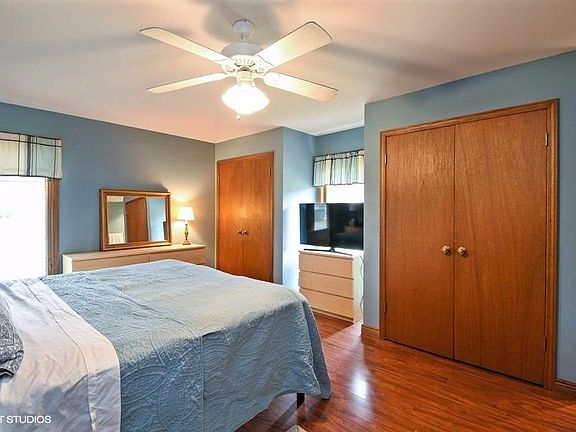DESIRED LOCATION. PRIVATE BACKYARD. PLENTY OF SPACE TO GROW! Enter and be greeted by a large tiled foyer pulling you toward the open concept dining and kitchen area. This space is the place to entertain with an original brick feature wall, large sliders to back decks, wood floors, a dry bar, center island and concrete counter-tops. Around the corner you'll find the living room with a large brick fireplace and lots of windows for natural light. Down the hall are 3 bedrooms, brand new beautiful guest bathroom and tiled master shower. Need more space? Head to the basement. There is another large family room with brick fireplace, a rec room with pool table and dry bar and an office area complete with built ins. This home has the largest decks I have ever seen with two pergolas, fire pit and is surrounded by farm fields. All appliances included, exterior recently painted and newer water heater and furnace. Come take a look!