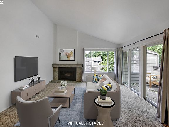 Centrally located condo in Cornell Meadows! Nike, Intel, Columbia, transit & shopping. Living room features vaulted ceilings, wood burning fireplace & private balcony. Soaring vaulted ceilings in both bedrooms. Large Primary Suite w/ full bath & walk-in closet. HOA covers water, sewer, trash, pool, & exterior maintenance! Dedicated covered parking and plenty of parking for guests.