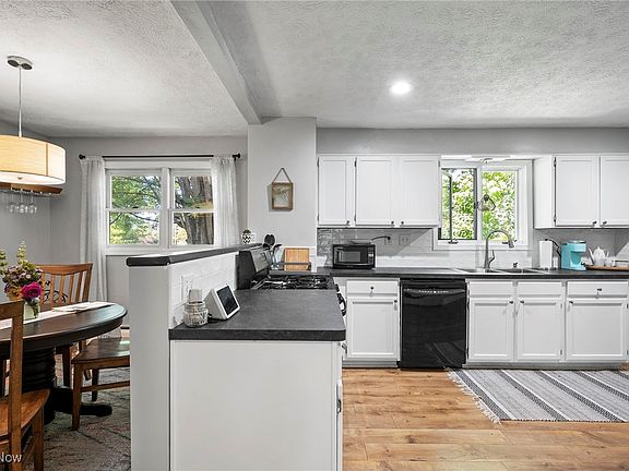 Welcome to this spacious and move-in ready Ranch located on over .55 acres in the Hudson Pines neighborhood with over 1,282 sq ft of one level living, extra wide driveway and located on a corner lot. This home features 3 bedrooms, 2 full baths, and an updated kitchen with backsplash, new skink and counters and a separate dining area, an open living room with walk-out access to the backyard patio with wooded views, and basement with glass block windows round the tour. Since purchasing the home, the seller has done many updates. These updates include: roof replaced (2023), kitchen remodel which included new countertops, faucet, sink and backsplash, laminate flooring installed throughout the home, full bath updated with new vanity, flooring, and shower, carpet replaced, and light fixtures updated. INCLUDED are all kitchen appliances and washer/dryer. Conveniently located near I-80, RT 8 with easy access to Cleveland and Akron, tons of shopping, restaurants, parks, and other local attractions. This home is a must see!
