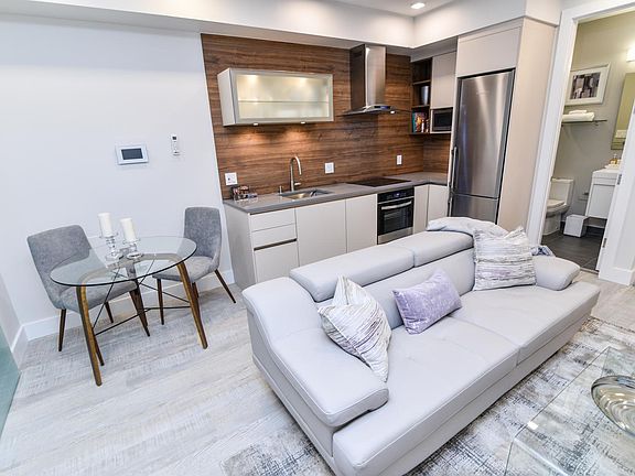 New construction. Unit is fully furnished. Complete with luxury upgrades and advanced technology, this is an ultra-modern, fully furnished 1 bedroom, 1 bathroom English basement condo situated in a historical Dupont Circle row-house. The custom kitchen and dining/living areas feature 9+ foot ceilings, 7" wide plank engineered hardwood flooring, stainless steel appliances and quartz Cambria counter tops in the kitchen. There is a spacious bathroom with a roomy walk in shower; the bedroom easily hosts a queen-sized bed and ample dressing room. The unit also comes with washer and dryer in unit, and in-wall air conditioning. Additional features include a 50" Samsung Smart HDTV with Apple TV available for use by tenants using their own Apple ID, Netflix, Amazon Prime, etc. accounts. High Speed Internet Service is through Verizon Fios.