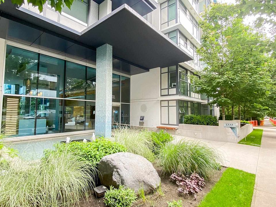 Beautiful courtyard facing with perfectly functional 1-bed plus den/office/flex room suite that offers a large patio with high end finishings (Miele gas cooktop and oven, AEG integrated dishwasher, thick stone countertops, LG red washer/dryer, etc.). Over-height ceilings at 9'. Clears the building outside; views of sky and partial water diagonally to the right. Concierge, great gym, rooftop common terrace. Suite and patio faces the lovely inner courtyard with large water feature - quiet. 1 parking, 1 locker. Located just steps away from Kitsilano Beach, Granville Island, Downtown, and more! First Showing July 8 Thursday 5:00pm-6:00pm, July 11 Sunday 10am-11am, Parking #111 Locker #94