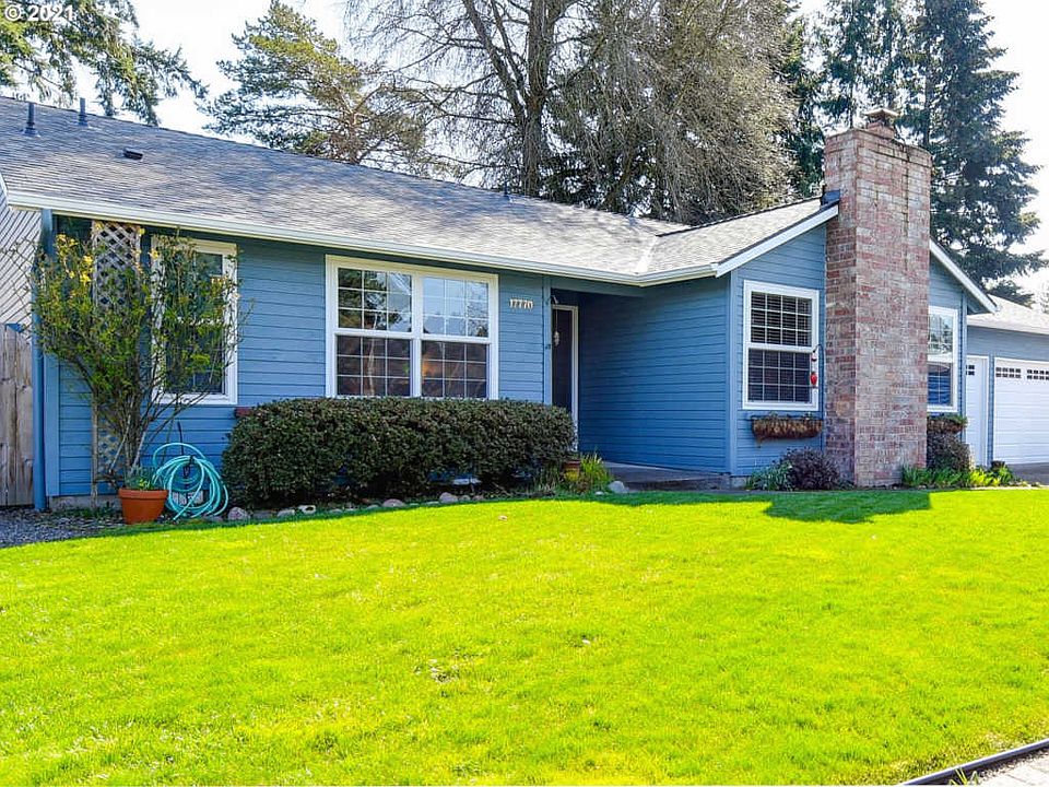 OPEN HOUSE 3/20 & 3/21, 1-3pm. Welcome home! This 3 bed/2 bath ranch has cathedral ceilings in the living room, spacious kitchen and family room, 2 fireplaces, central air, and a large garage with plenty of storage. Main bedroom has full bath and walk-in closet. Fully fenced backyard with patio, garden beds, and gardening shed (or playhouse!). New roof, gutters, garage doors, and fresh exterior paint added in 2020. This home is waiting for you! Convenient to Nike, Parks, Trails