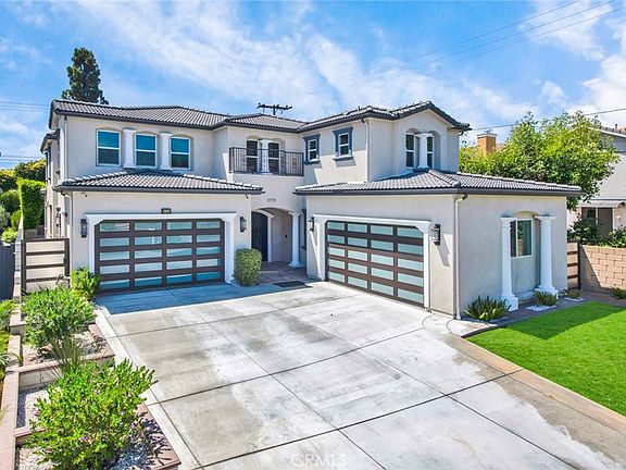 This stunning 2020 custom-built home is a true masterpiece, offering an unparalleled living experience. Spanning 4,430 sqft, this 6 bedroom, 5.5 bathroom residence is meticulously crafted w/top-tier materials & exquisite attention to detail. It features 2 epoxy-finished two-car garages, each with 2 Tesla EV charging stations & premium $10K garage doors. The home exudes elegance with its dual-zone central A/C, full security system, and soaring volume ceilings. Beautiful arched passages lead you through spaces adorned with quartz countertops, extensive LED recessed lighting, and luxurious light fixtures. The interior is further enhanced by dual-pane windows, clear glass French doors, and a state-of-the-art surround sound system. Flooring choices include porcelain wood-look tile on the lower level & bamboo wood upstairs, complemented by custom wrought iron railings & hardwood banisters. Solid wood 8' raised panel interior doors and white shaker self-closing cabinetry complete the sophisticated design. Nestled at the end of a cul-de-sac in one of FV's premier neighborhoods, this exceptional home is just 4 miles from the beach & in the top-ranked school zone. The open-concept floorplan is light, airy, and perfect for entertaining, featuring a grand great room with a marble fire-ice fireplace and a wall of oversized glass pocket doors that seamlessly blend indoor & outdoor living. The gourmet kitchen is a chef's dream, boasting a massive center island w/seating, floating open shelving, raised wave-tile backsplash, & under-counter lighting. Professional-grade stainless KitchenAid appliances include a 6-burner+griddle range w/double ovens, a second 5-burner gas range—both w/pot fillers & hood vents, 2 dishwashers, 2 refrigerators, wine fridge, & stainless farm sink. A secondary butler's kitchen w/walk-in pantry adds to the home's functionality. The first floor also features a bedroom, game room, & formal dining area. The dramatic staircase leads to the upper level, where an expansive wrap-around landing offers additional living space. The luxurious primary suite is a sanctuary w/an enormous walk-in closet & spa-like bathrm w/dual sinks, a soaking tub & separate shower. Each bedrm is an ensuite, showcasing exquisite tile surrounds & touch-light mirrors. The upstairs laundry room boasts retro-chic tile flooring & a utility sink. This home is a rare find, offering elegance, comfort, and a seamless blend of indoor & outdoor living spaces for memorable entertaining.