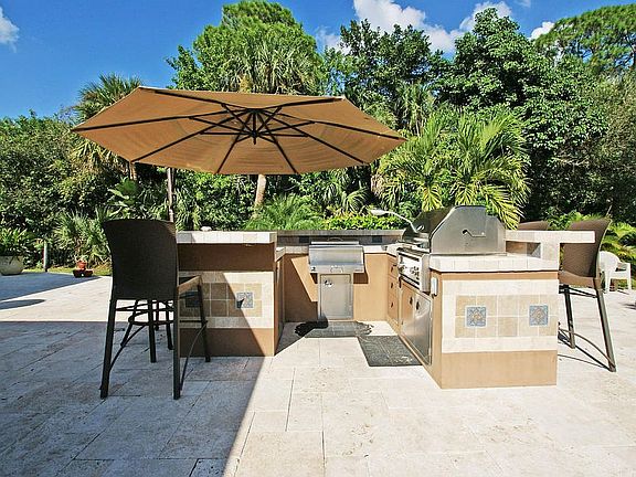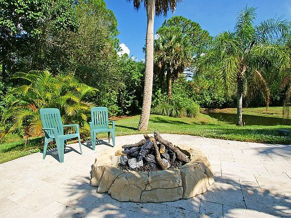 Love outdoor living and entertaining? This is your home! Beautiful oasis-style pool with sun shelf, over-sized spa, spacious Travertine deck, summer kitchen with counter bar & outdoor fire pit! This well-maintained 4BR home features updated kitchen, baths & floors; impact windows; cozy, stone fireplace; large, covered patio; electronic, gated entry; and, separate 2-car garage. Conveniently located just 300 yards off Indiantown Rd.