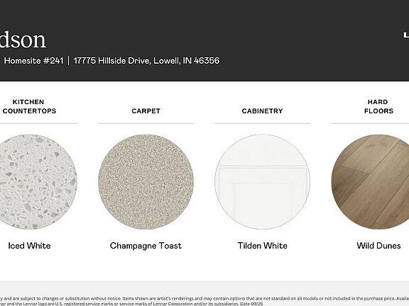 SPEICAL FINANCING AVAILABLE!READY FOR NOVEMBER DELIVERY! Homesite #241 Experience the ideal fusion of contemporary style and practical design in the stunning Davidson model. This thoughtfully crafted two-story home offers four spacious bedrooms and three full bathrooms, providing the flexibility and space that today's families need. The open-concept main level is centered around a contemporary kitchen featuring a large center island, quartz countertops, abundant cabinetry, and premium stainless steel appliances. Adjacent to the kitchen, the dining area and Great Room create a warm, inviting atmosphere ideal for both daily living and entertaining. A versatile fourth bedroom is conveniently located on the main level, perfect for guests or as a home office. Upstairs, the luxurious owner's suite offers a relaxing retreat with a generous walk-in closet and a private en-suite bathroom. Three additional bedrooms and another full bathroom ensure comfort and privacy for family members or visitors. A loft and a second-floor laundry room add extra convenience to the home's smart layout. With a two-car garage and elegant finishes throughout, the Davidson model is designed to meet the needs of modern living while offering a stylish and welcoming environment. Exterior will be Country Beige color siding. (pic for reference ONLY) *Photos are not this actual home* Spring Run is a welcoming community of new single-family homes for sale in the beautiful town of Lowell, Indiana. Surrounded by the charm of a historic downtown district and a variety of popular recreation areas, Spring Run offers an ideal setting for families looking to enjoy a relaxed, small-town lifestyle.