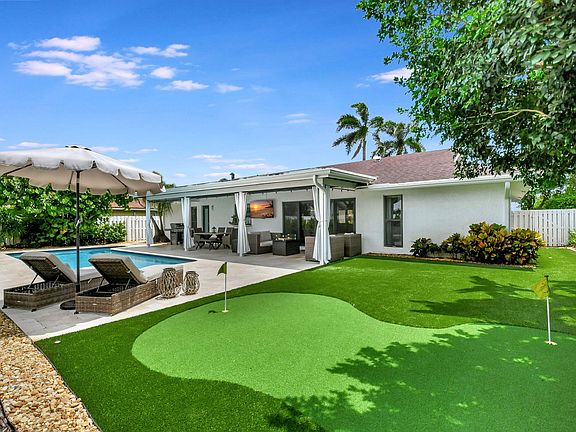 Welcome to your Dream Home in the Serene and Sought-After Pheasant Walk Community of Boca Raton! This Recently Renovated & Pristinely Maintained 3-Bedroom, 2-bath Residence Boasts a Spacious and Inviting Open & Split Floor Plan With Modern Finishes with Elegant Warm Comforts and timeless appeal. The Heart of the Home features a Stylish Kitchen with Stainless Steel Appliances, Oversized Island with Built in Wine Cool & Cabinetry, while seamlessly flowing into the open-concept dining and living areas. The Private Backyard Oasis is the True Highlight of this Property. Enjoy endless Sunny Days lounging by the Recently Resurfaced Pool or Practice your Putting Skills on your Very Own Putting Green. The Backyard is Thoughtfully Designed with a Covered Patio Area, Featuring an Outdoor TV Area, Landscaped with Clusia Plants for Privacy, & Artificial Turf for Easy Yard Maintenance. Additional Features Include a Two-Car Garage with Epoxy Flooring, Low HOA Fee, Families will appreciate the Sidewalks & Private Park within the Community. Not to Mention, Pheasant Walk is Zoned in A-Rated School District.