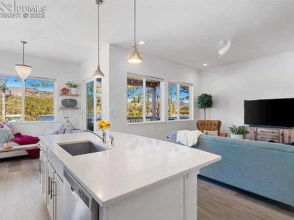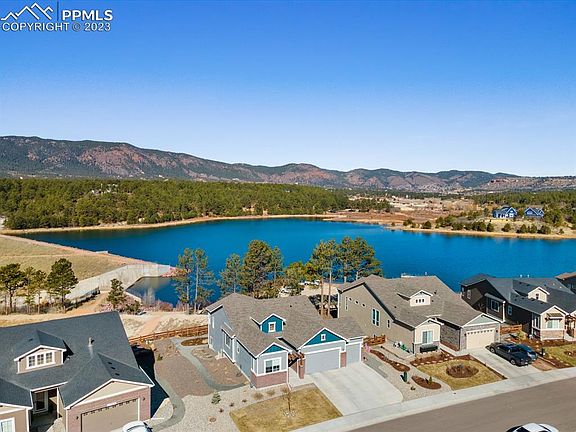 Make your dream home come true in this modern and contemporary waterfront home with gorgeous 180-degree views of mountains, open space, and Monument Lake. Walk out of your back gate to enjoy fishing, kayaking, paddleboarding and hiking trails. It's like you're on vacation every day. The open floor plan is the perfect blend of style and comfort with luxury vinyl plank flooring, 10' ceilings, large picture windows, and cozy seating areas. Entertaining is a breeze in this chef’s kitchen with large center island, gas range/oven, abundant cabinets, walk-in pantry, and butler pantry to the formal dining room. The great room features a gas fireplace and walk-out doors to the covered upper deck overlooking the lake and private back yard. The main level features two bedrooms and baths, including the master retreat with lake view and adjoining spa 5pc bath. The walk-out basement level offers more entertaining space with a large recreation room with wet bar and 9’ ceilings. Two more bedrooms on the lower level share another well-appointed bath. Storage space is no problem in the huge unfinished area. Other amenities of this home include a fully insulated 3-car garage with built-in shelves, central air, xeriscaping in the back yard, main-level laundry with cabinets, and more! This is modern luxury living at its best!