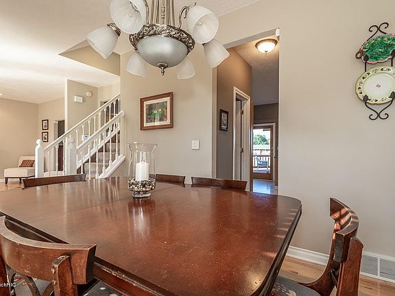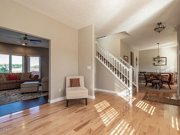 Custom built, quality home by Andy Woods Construction w/5 acres yet less than 5 miles to downtown. Open concept living, featuring cozy family room w/fireplace, bay window, dining area/kitchen w/sliders to resurfaced, lrg back deck showcasing your outstanding country views. 10 ft high ceilings, Maple & Bamboo Hardwood flooring in living areas on 1st floor. Tiled laundry/mud room & half bath off 2 car garage/kitchen area. KITCHEN APPLIANCES NEW 11/19, ALL S. STEEL. Lower level w/egress features finished rec room & bedroom, area plumed for 3rd full bath. Upstairs 3 nice sized bedrooms, full bath, Plus Master en-suite 1 yr old jet tub pump, dbl sinks & lrg walk-in closet. Windows galore, sunshine abounds! Outside a separate 30x40ft barn w/cement floor, 100 amp electric & 11-ft overhead door