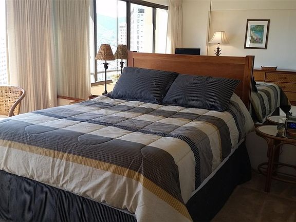 High floor studio unit at Discovery Bay with Diamond Head and mountain views. Cool side of building. Long term rental, one year lease. Fully furnished with 1 parking , washer and dryer in unit. Secure building, pool, hot tub, sauna. Close to beach, dining, busline and Ala Moana Shopping Center.