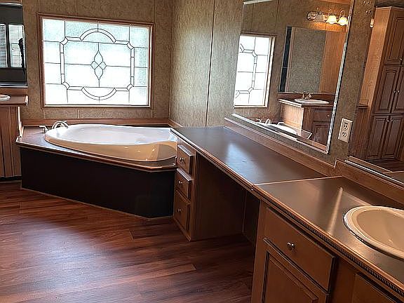 2007 Kabco brand doublewide newly remodeled on 12.86 acres in East Beauregard school district. Roof was installed in December 2020. Waterproof vinyl wood plank flooring throughout that has never been lived on. Water heater was bought in 2022. Brand new 2 car carport. Very spacious with 2 living areas, wood burning fireplace, HUGE master closet, bathroom and master bedroom. Jack and Jill bathroom between two bedrooms and third bathroom located by the laundry room and fourth bedroom. Very beautiful and spacious kitchen with walk in pantry. Outside area is separated by two fenced areas then the property continues for approximately 1/4 mile. Lots of wildlife, berries and muscadines on the property. Quiet and serene area with a long driveway for privacy.