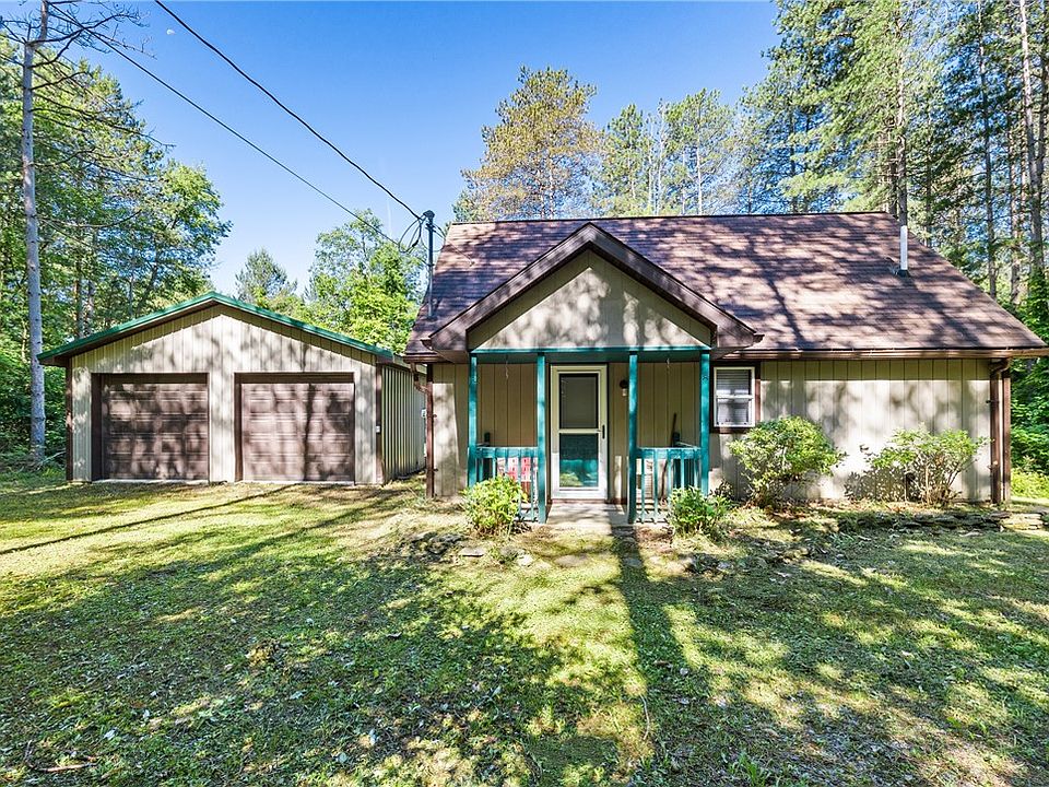 Situated in the Heart of the Finger Lakes this 2 Bedroom and 1 Full bath home comes with just over 5 acres of a mainly wooded lot. Located off a private drive this property is secluded and has trails and plenty of space for hiking, hunting and outdoor recreation. The home has an Open floor plan Living room and Family room with Full bath and laundry, upstairs is one large bedroom with another area that's deemed a second bedroom on the Tax Records. Sit back and relax on your private spacious back deck and enjoy the peace and serenity this property has to offer. A Large Pole barn serves as an oversized 2 car garage/workshop with Electric and also has plenty of space for storage. The Home is being offered Partially Furnished.