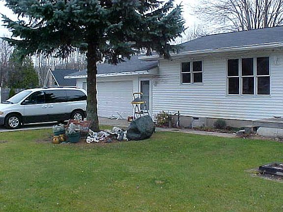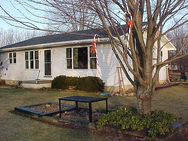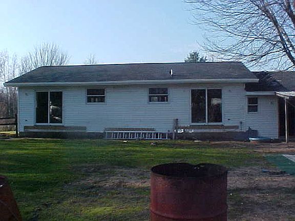 28 X 40 Ranch/crawl (Open concept) w/att garage. 16 x 20 shed on ground. 152' road frontage to RR tracks to east. Very peaceful. Located on secondary road so we get plowed in the winter, regularly. 2 1/4 miles to US 10. Easy access. Three lakes within walking distance. Old fence, had horses, check current zoning, 9 perennial gardens, vegetable garden 40 x 100, wooded, with seasonal standing water. Very peaceful. AC not needed due to mature trees and good air flow. 1996 had new plumbing, siding, sub roof 40# and shingles. 2001 fire, smoke damage, gutted and rebuilt. R 13 walls, Pella windows, etc. Needs finish work, but very livable. Sell as is. Would make a great summer home. Drive by, no showings unless have appointment. House sold AS IS .