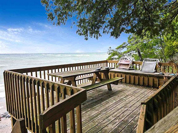 Carefree living just 15 minutes from Harbor Springs! On the iconic scenic "Tunnel of Trees" this home is surrounded by nature and stunning views of Lake Michigan with 152 feet of sandy beach. A lower deck near the waters edge offers seating, great views of the natural shoreline and tranquility. This home has 3 bedrooms plus a loft, 2 baths and a two car attached garage on 2.25 acres. The main floor living room has a wood-burning fireplace and adjoins the dining room and expansive kitchen area with access from the garage. The main floor features a private sauna, a king size bedroom with its own sliding glass doors to the deck and spectacular views. Across the hall is a sleeping area with a trundle bed and stairs leading up to the loft area, with two double beds and a twin bed. The master loft features views of Lake Michigan, wood- burning fireplace, delightful sitting area, sleeper sofa, and a private full bath. Magnificient sunsets!
