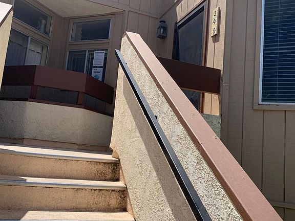 Welcome to this Light and bright upstairs 2 bedroom/2 bath condo that is move in ready!. Step into the entry that leads to the cozy family room with vaulted ceilings and a fireplace to relax by. New carpet and paint throughout. The kitchen is complete with plenty of cabinet space, tiled countertops and floors. As well as a stainless steel appliances and a garden window. Dining area has a beautiful chandelier and spacious balcony overlooking the relaxing views of trees and manicured grounds of the community. The master bedroom is complete with 2 closets, and attached bath. The secondary bedroom and bathroom are both spacious in size. Stackable washer and dryer included! Complex has a pool, two spas, tennis courts, BBQ area, green space, Clubhouse for private parties and is pet friendly. HOA includes water, trash and sewer. Walking distance to Stater Bros and restaurants! Plenty of parking for guests.