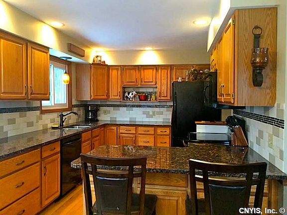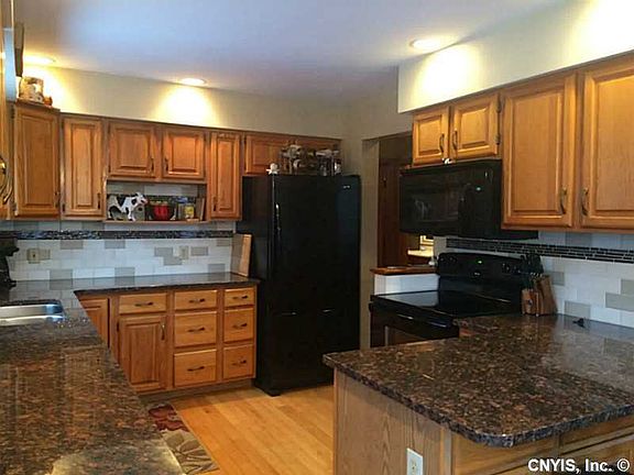 Stunning contemporary home nestled on a private 2.5+ acre wooded lot! The open floor plan & vaulted ceilings create a bright & airy living space with a cozy wood-burning FP for chilly nights. Fully updated kitchen w/ granite countertops & new appliances. 1st flr mstr bed/bath & laundry! Partially finished walk-out basement w/ plenty of space for storage. Countless improvements including foam insulation, new windows, roof & furnace. Relax on the extra large deck and enjoy your private view! Quick, easy commute to Syracuse or Cortland. This immaculate, well cared for home is a MUST SEE!!