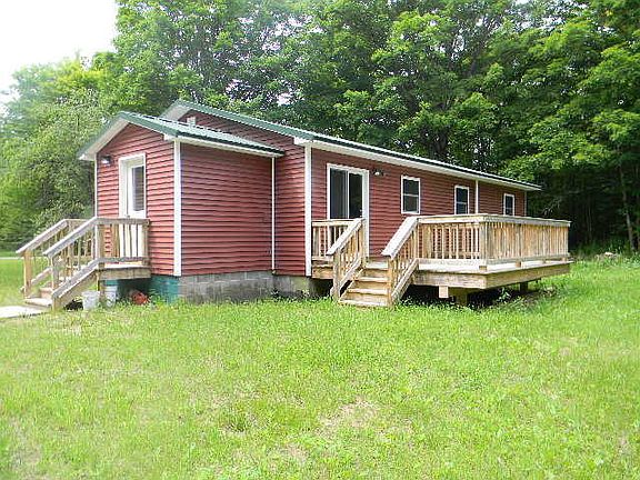 Remodeled 3 bedroom, 1 bath ranch style house on 1 acre with a full basement. The main floor of the home was gutted and replaced with new drywall, flooring, updated bathroom and kitchen. Home comes furnished with all of the appliances. The furnace and duct work, siding and metal are new. The house is located only minutes from town. There is a cement pad in place for a garage. Part of the acre is hardwoods and there is a nice deck in the backyard. Move in ready!!!