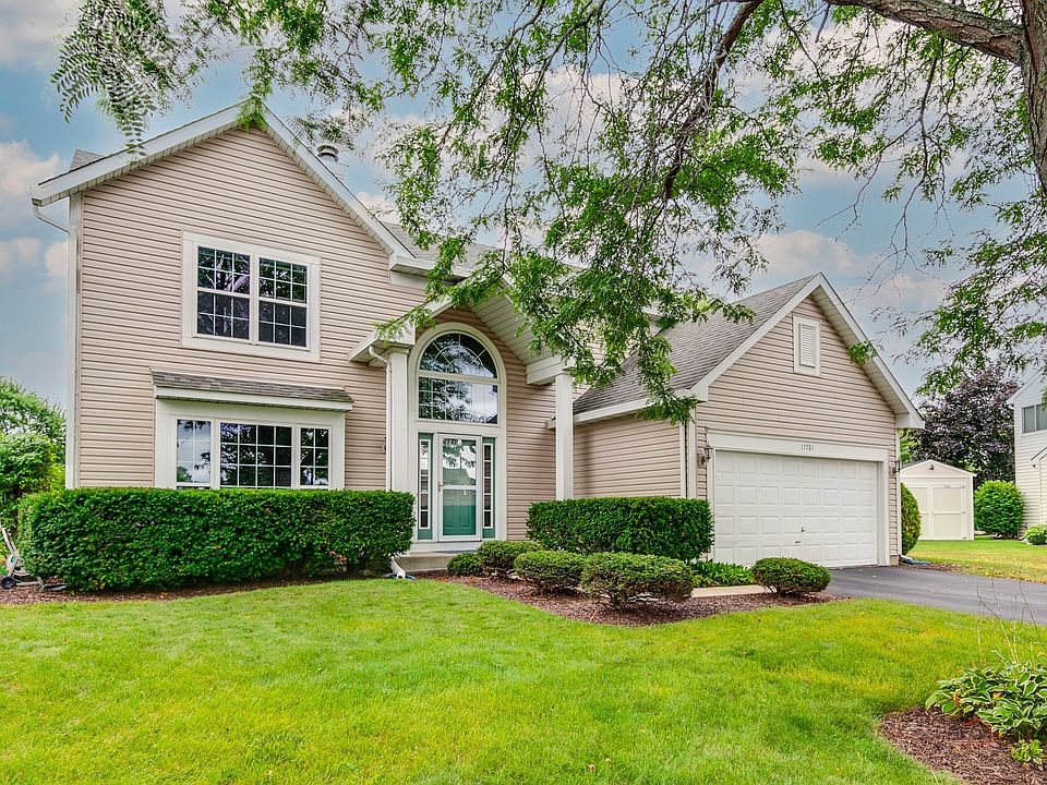 Welcome to this beautiful 4-bedroom, 2.1 bath home in the desirable Bridlewood subdivision, perfectly situated on a quiet cul-de-sac lot with serene pond views. Step inside to an inviting living room with a cozy fireplace and a welcoming dining room, ideal for gatherings. The bright and open kitchen features an island with breakfast bar, stainless steel appliances, and a sunny eating area with exterior access, seamlessly flowing into the spacious family room. Upstairs, you'll find a versatile loft, perfect for an office or play space. The master suite impresses with vaulted ceilings, a large walk-in closet, and a spa-like ensuite with a double sink vanity, soaking tub, and separate shower. Three additional bedrooms and a full bath complete the second level. The full finished basement provides even more living and entertaining space. Outside, enjoy the gorgeous brick paver patio and tranquil pond views-ideal for relaxing or entertaining outdoors. With a fantastic location close to Gurnee Mills shopping, dining, and more, this home offers the perfect combination of comfort, convenience, and charm! ***Gas line is avaialbe for a gas stove!