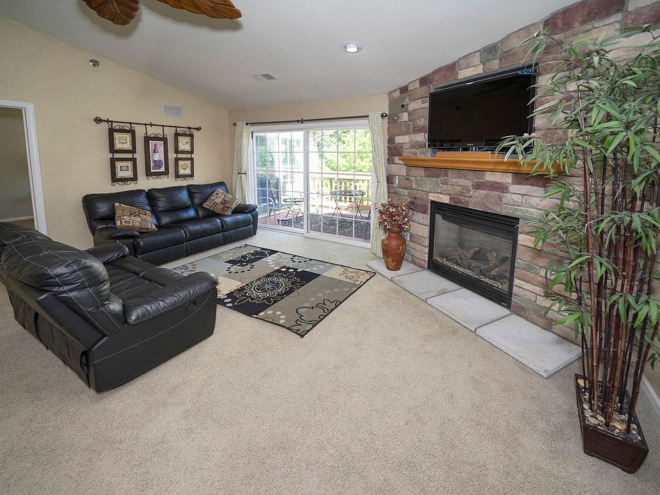 Enjoy The Private Wooded Views From This Spectacular Upper 3 Bedroom 2 Bath With 3 CAR GARAGE! Spacious Open Concept Living Room/Kitchen with Cathedral Ceilings, CF and Grand Floor To Ceiling Stone Gas Fireplace. Relax With The Quiet and Wildlife On The Large Deck! Kitchen Features Updated Cabinets, Eat In Kitchen, HWF's, Tons of Counter Space, Breakfast Bar, Newer Appliances & Skylight. Master BR w/ Patio Door to Deck and CF, Extra Large Master Bath w/Jetted Whirlpool Tub, Walk In Shower, Double Sinks, Massive Walk In Closet. Central Vac System, Clubhouse, Pets Allowed.