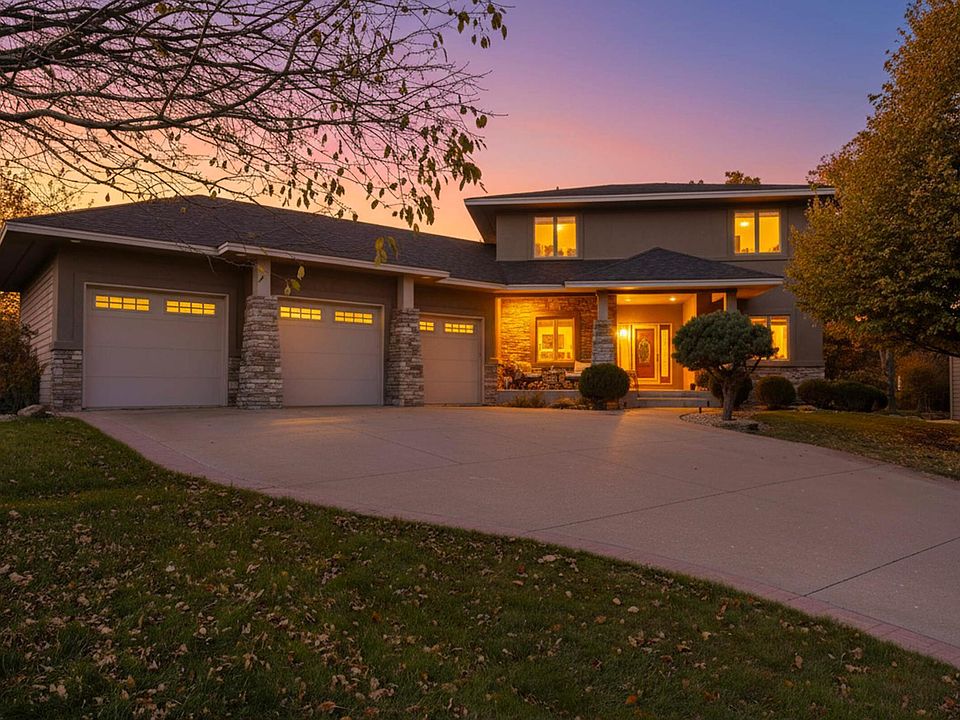 Don't miss this modern prairie style home in a perfect cul de sac location! Massive oversized 3 car garage with oversized garage doors! Garage has vaulted ceilings and tons of storage and is fully insulated with floor drains! 4 Bedrooms on upper level and 2 bedrooms in lower makes this a 6 bedroom home + flex/office space on main level! Walkout lower level is flooded with natural light and features a wet bar, fireplace and two bathrooms and a second laundry setup which makes this a great opportunity for guests or multigenerational living. Double sided fireplace is the heart of the kitchen, dining, living space on the main level. Central Audio system, stamped concrete driveway, abundant storage and so much more! A short walk or bike ride to Brackett's Crossing, where a Social Membership gets you access to Dining, Pool Access and Community!