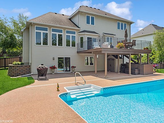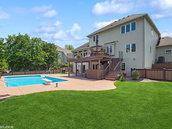 custom cabinetry. The upper level features 4 bedroom and 2 bathrooms. The Owners suite bath is a bright space with a soaking tub & walk in shower. As you head down to the lower level, the entertainment area is fantastic. With a walkup bar featuring a sub-zero fridge. The pool table is included. Outdoor living at its finest! A large 18'x36' in-ground swimming pool(salt water), with a patio