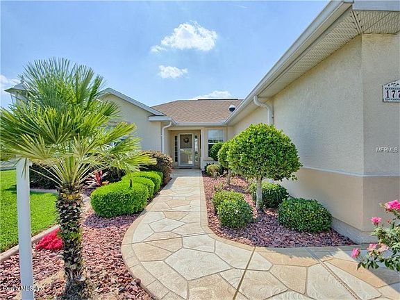 Tastefully UPGRADED 'Sycamore' Model in Stonecrest! Hand carved PORCELAIN CEMENT driveway w/ matching walkway. Lush, mature landscaping w/ rock filled planting beds & concrete curbing for low maintenance. Second glass window front door w/ screen allowing the Florida breeze to flow into the home. The foyer features diagonal ceramic tile & arched entryways to the living space & kitchen. The great room w/ VAULTED Ceilings & WOOD Laminate is spacious, light & bright w/ two ceiling fans & custom window treatments. The kitchen is absolutely stunning w/ real oak cabinetry w/ crown moulding complimented by Cambria QUARTZ countertops, diagonal ceramic tile & all matching newer Frigidaire Gallery STAINLESS STEEL Appl. In addition, there is a TILE BACKSPLASH, UNDER CAB. LIGHTING, PULL-OUTS &