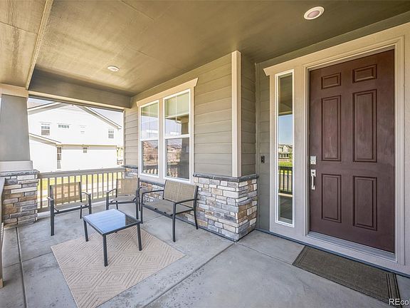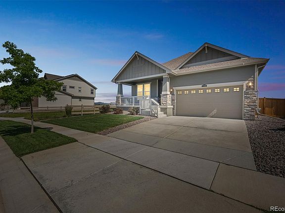 This stunning ranch-style home offers modern comfort and elegant design with sweeping views and bright, open living spaces. Featuring a beautifully landscaped backyard that opens to open space and mountain views, the covered patio is perfect for outdoor entertaining or peaceful relaxation. Inside, you’ll find soaring ceilings, expansive windows, and rich rustic hardwood-style laminate flooring that flows through the spacious living and dining areas. The gourmet kitchen is a chef’s dream, boasting dark espresso cabinetry, granite countertops, stainless steel appliances, and a large center island. The open-concept floor plan connects seamlessly to a cozy living room with a fireplace and abundant natural light. With generously sized bedrooms, a luxurious primary suite, and an unfinished basement offering room to grow, this home blends functionality with style in a quiet, sought-after neighborhood.