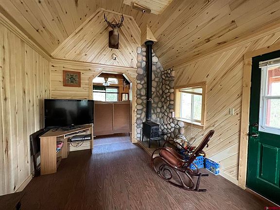 Escape to the mountains! Greeted by Aspen Trees, and wildflowers with a view of Hesperus Mountain this one bedroom furnished cabin features a loft, woodstove with rock wall, and kitchen with propane stove and fridge. Solar panels charge batteries or you can use the generator to watch movie/TV, or run the microwave. Seasonal access: summer by car. and winter by snowmobile! Off Grid. Borders a pond on the east. 2 sheds. National Forest is just 1/4 mile away! Only 30 minutes from downtown Mancos.