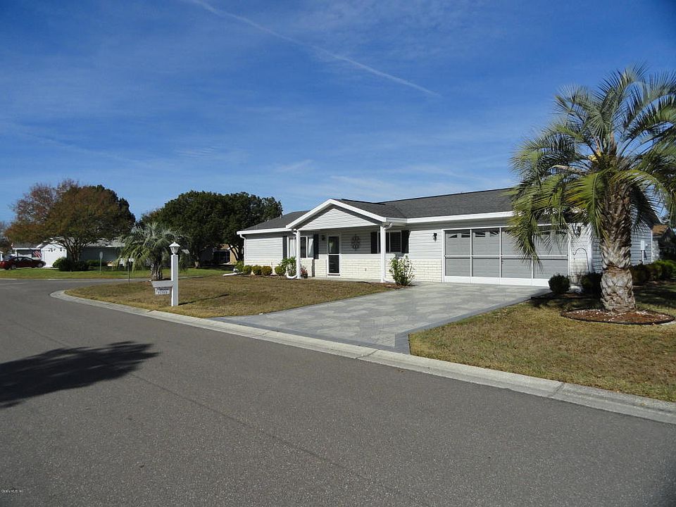 55+ Secure Gated Golf Course Community just north of The Villages. This delightful Fir model is an 1,144 SF split bedroom floor plan on a big corner lot! Truly a move in ready home. Pergo laminate floating flooring throughoutNeutral 18'' ceramic in bathrooms. Volume ceilings add to the open living/dining area. There is also an eating area in the kitchen. The lanai has slider vinyl windows and a door to covered patio that is accessible from the garage or lanai for grilling! The perfect location, this gem is walking distance to pool, nature park, softball park and community center which offers a multitude of activities! Current furnishings remain.