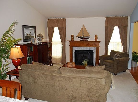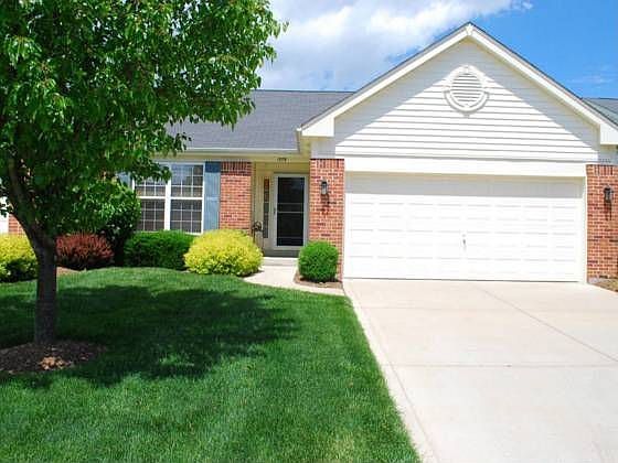 You will feel at home from the moment you walk through the front door! Hardwood foyer entry leads to formal living room and dining rooms featuring cathedral ceilings and gas fireplace with marble surround and decorative wood mantle. Cathedral ceiling continues into gourmet kitchen, offering plenty of cabinets/counterspace, pantry and breakfast bar with room for stools, open to nice dining area. Doors lead to lovely screen-in porch - perfect for relaxing on spring evenings! Luxury master suite with bay window and private bath boasting double vanity, large shower with seat, linen closet and large walk-in closet. Main floor laundry room offers storage closet and shelf. Wait until you see the finished lower level! Sunny daylight windows light up large Family Room. Lower level also offers 3rd BR, linen closet full bath and plenty of storage. Close to Metrolink, dining and shopping -- great location! This great home is ready for a new owner, ready to move right in. $150 per month Association Fee covers lawncare, sprinklers and all exterior maintenance. Call for a private showing today!