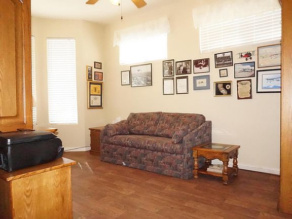 This 1596 SF is well maintained in 55 Community.@ bedroom, 2 Bathrooms and Den . Pay windows in the den and Kitchen to enjoy. Open floors to enjoy . Nice back yard and very low maintenance.Lots of storage in the home and the garage . Work bench in the garage. Great Neighborhood.Most of furniture convey with the sale.