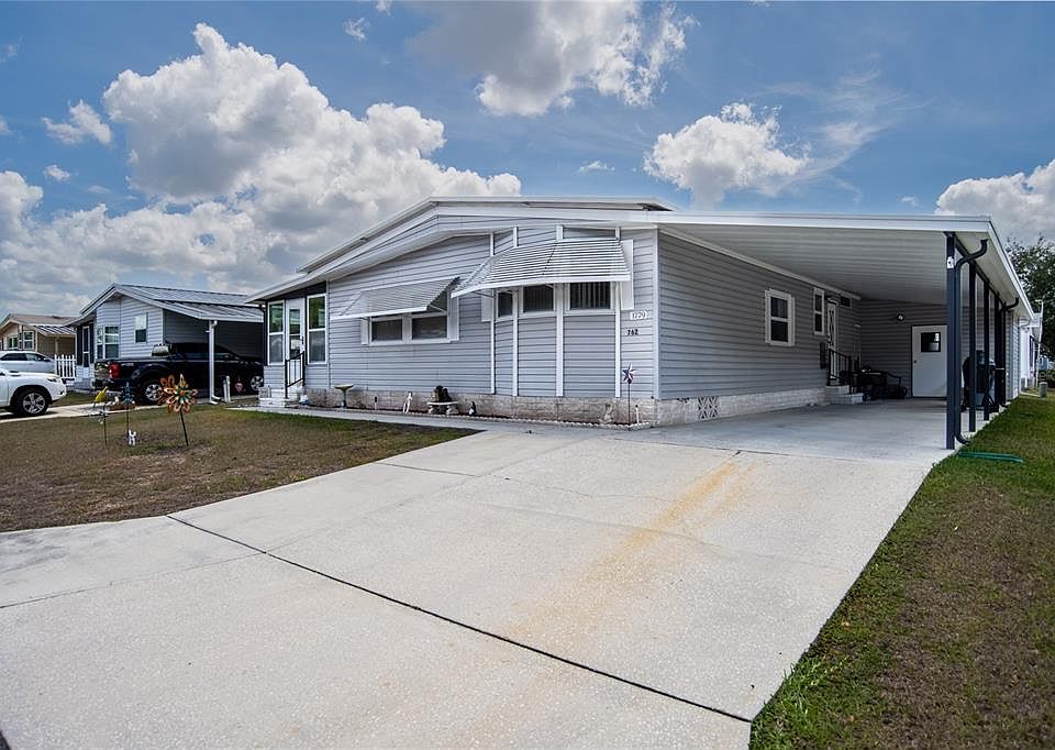 Back on the market. Buyer financing fell through. Come relax in the lovely 55+ Community of Foxwood Lake Estates where you OWN the land. This large 2 bed 2 bath with home is ready for you to add your personal style. Enjoy your morning coffee at the breakfast bar in the kitchen or from the Florida Room off the front of the home. Open concept living and dining areas make entertaining a breeze. Spacious guest room and bath with walk in tub is available. Ample storage throughout the property with built in hutch in dining room, indoor office/utility/laundry as well as an exterior shed/utility area where the laundry currently resides. Property had new electrical panel and L1430-twist lock for generator installed in 2020 as well as a new 40 gallon water heater and re-plumed. In 2021 the seller invested in new vapor barrier under the home and had additional tie downs added and home leveled. This community offers clubhouse, community pool and hot tub, fitness center, fish stocked lake for fishing, covered shuffle board courts, walking path and more. Community breakfasts, dinners and other social events so you can meet the neighbors. NOT LOT RENT. Conveniently located to shopping, restaurants, medical facilities, and I-4. Schedule your private showing today. Land, Site, and Tax Information