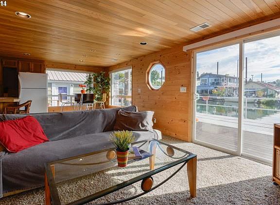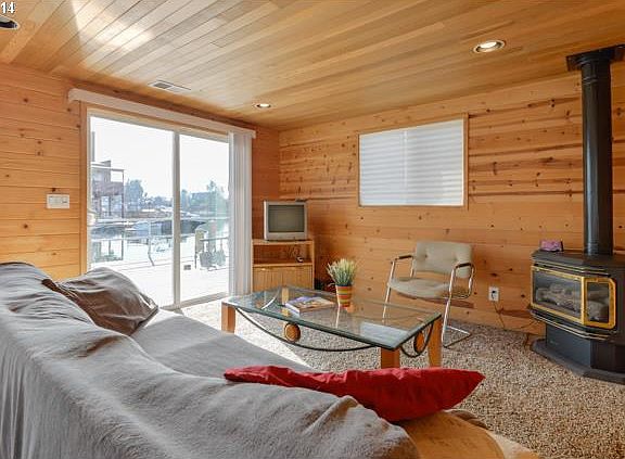 Lovingly remodeled in 2004 w/ new pine walls & cedar ceiling. Bdrm has den/office area. Large utility rm. Gas firepl in living rm., Cedar lap siding, Rubber roof, steel stringers, great logs. Swim float with Gazebo included. Slip Ownership! Low moorage fees. HUGE, extra large 94 ft slip! Currently not using all of slip-could fit large boat, add tender house. Secure gated moorage. Near shops, Restaurants, transit.