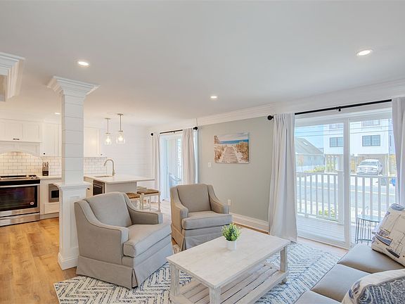 Absolutely one of the nicest condos to hit the Avalon market! Just completely renovated from top to bottom! All new flooring, new shiplap walls, New kitchen with all high end stainless appliances and stone tops with a great center island. This first floor unit has its own private entrance and is only 2 steps to the living area. Built in custom beds, master with a king and ensuite bath. The bathrooms are custom designer tile and everything is new. The heating and Air Condition units have also been replaced. A nice size deck spanning the living and kitchen area providing a view of the bay. The entire complex has also been renovated and is in great condition for years to come. Brand new designer furniture also included. Rental potential of 40K per summer Off Street parking and conveniently within walking distance to all of Avalon's best attractions.