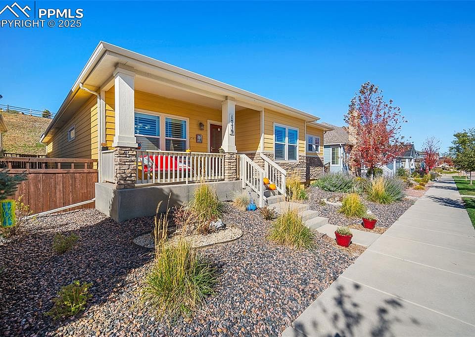 Welcome to this stunning 4-bedroom, 4-bathroom modern ranch located in the highly sought-after Gold Hill Mesa community on the west side of Colorado Springs. Just 11 years young and once a former model home, this residence blends modern design, open-concept living, and elegant finishes throughout. Step inside to find beautiful wood floors spanning the main level and a spacious open floor plan perfect for entertaining. The large kitchen features generous counter space and flows seamlessly into the family room, which opens to a charming outdoor space with serene mountain views. The main level includes the luxurious primary suite with and a spa-like bath, plus a second ensuite bedroom ideal for guests or a home office. Downstairs, enjoy a large family room with a wet bar, two additional bedrooms, and a special secret wine room — a true hidden gem for wine enthusiasts. The expansive storage areas provide plenty of room for organization and hobbies. A spacious 3-car garage with electric car charge completes the home, offering ample space for vehicles and gear. Experience Colorado living at its best, modern comfort, scenic views, and community charm and all within minutes of Bear Creek Park, and downtown Colorado Springs.