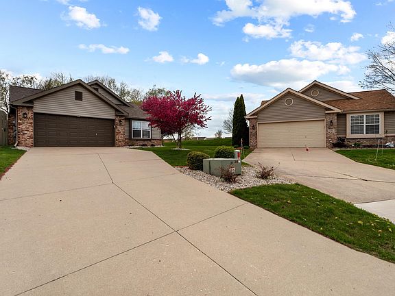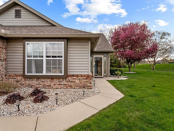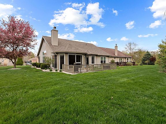 This home in Hunters Cove sits on a large lot in a quiet cul-de-sac, overlooking hole #14 of Wildcat Creek Golf Course. Inside, you'll find a bright Great room with cathedral ceilings and a cozy gas log fireplace. The Kitchen has new countertops, new stainless steel appliances, and laminate flooring. The dining area has a peaceful view of the backyard. The Owner’s suite includes a walk-in closet, dual vanities, and a stand-up shower. There's also a spacious 2nd bedroom and a big office/den. Don’t miss the Sunroom and back patio. Recently painted inside and out, this home is a real find with a low $90/month HOA fee covering lawn maintenance and snow removal.