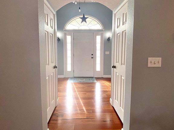 Beautiful home in country setting with views and access to private lake. The split floor-plan includes an eat-in kitchen along with formal dining area and an office space. The screened porch overlooks a great deck that includes a covered grilling area. Partially fenced yard, a storage shed, and an insulated finished detached garage with a split unit are a few of the added extras of this property. Updates in the last two years include master bath remodel, guest bath upgrades, professional landscaping, new kitchen and bath flooring, new screen for porch in 2023, new roof, split unit in out building, kitchen backsplash, 2024, and a new HVAC 2025. This one could easily be your Forever Home.