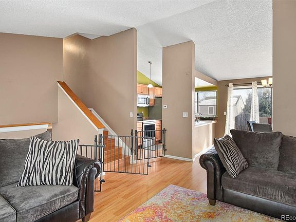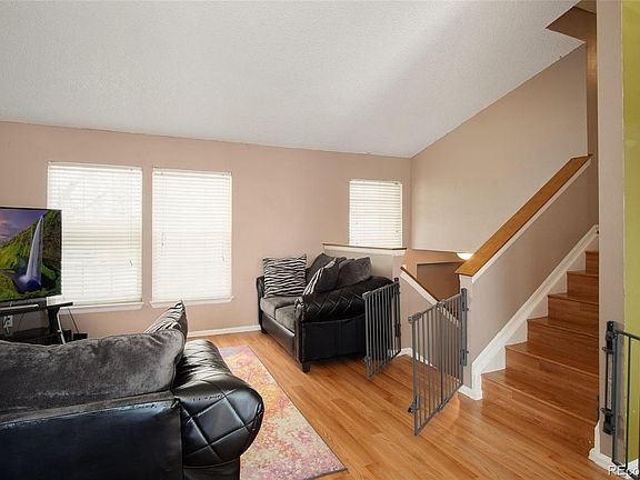 Updated tri-level home in the heart of Tollgate Village on an oversized 1/4 acre corner lot. A foyer leads to the open main floor that is accented by beautiful hardwood floors, a vaulted ceiling & abundant natural light. Easily entertain from the updated kitchen that features stainless steel appliances, a pantry & a sliding door that opens out to the deck for a painless transition to outdoor dining. Hardwood floors continue throughout the upper level that hosts 2 secondary bedrooms, a Jack and Jill bathroom & the master that has a walk-in closet, en-suite 1/4 bath & private access to the Jack and Jill. Sunny lower level has a family room with a cozy wood-burning fireplace, additional bedroom & a full bathroom. Large fenced backyard has unlimited potential. 2-car attached garage is heated making chilly winter mornings a breeze. No HOA! Excellent central location minutes away from parks, shopping, restaurants, coffee shops, Buckley AFB, E-470, I-225 & the light rail.
