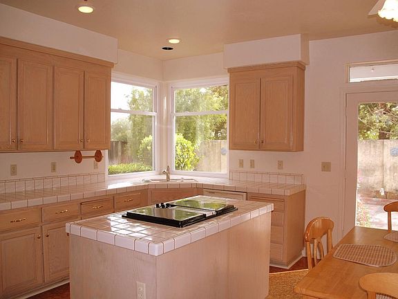 Desirable 5BR floor plan w/ ground floor bedroom & full bath. Welcoming entrance w/ soaring ceilings in the sunny living room. Light & bright formal dining area w/ views of the back yard & patio. Family room, eat-in kitchen w/ center island, new cooktop & cork floors, custom built in cabinetry & surround sound. Spacious MBR w/ all brand new view decking, tile flooring in bath & dual closets. Featuring: fresh paint, updated double pane windows, custom window coverings, raised living room/dining area floors.
