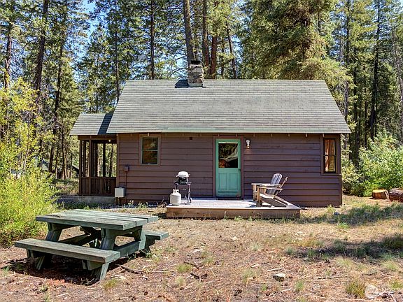 Early Winters Cabin 5 is nestled in the forest in Mazama adjacent Forest Service land, just below Sandy Butte. This studio cabin retreat features a King bed, reading area, and stone fireplace with gas insert. Fully furnished with vacation rental income of nearly $46K from 200+ annual rental nights. It's a short walk to the Methow Trails year-round trail system, North Cascades Heli, and Freestone Inn lodge. Enjoy access to Wilson Ranch amenities including an outdoor pool, hot tub, lake, and Freestone Inn restaurants. Architectural plans available to add 1 or 2 bedrooms, a laundry/gear room, second bathroom, and detached garage. This affordable vacation rental in the beautiful North Cascades celebrates Mazama's recreation history.